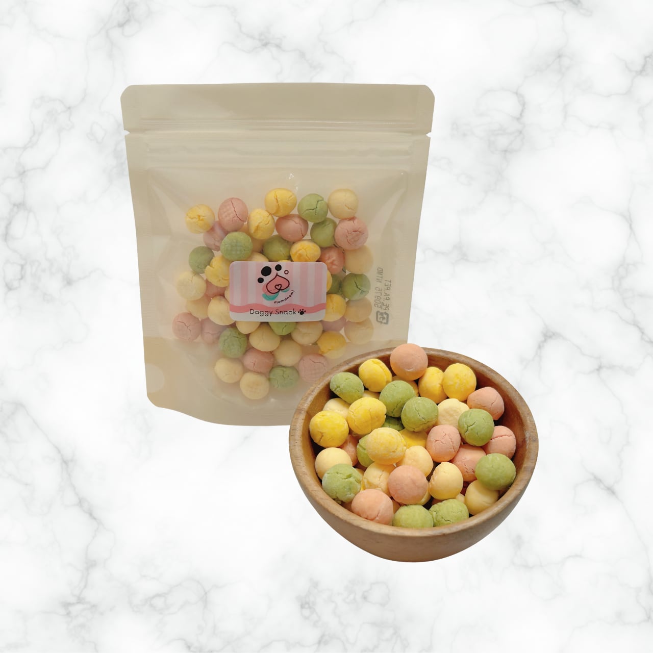 野菜パウダーで着色したワンちゃん用の手作りボーロ。